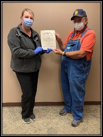 This past week a fellow Legionnaire, 2nd Vice Commander Louis M. Hale Jr., from our Hominy Post 142 brought to my attention an award that Louis presented to PA Joanna G Sanford on October 27, 2021, with the Post 58 Veteran of the Month Certificate from Post 58 in Arizona. The Certificate was presented at the Wah-Zah-Zhi Health Center.