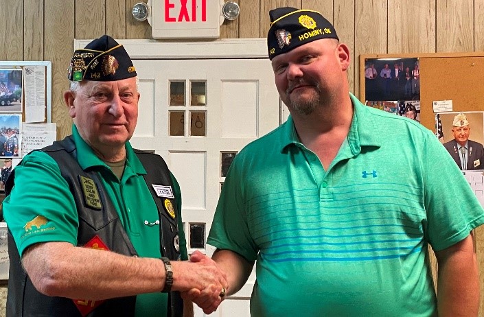 At our last Hominy Post 142 monthly business meeting, there was a small ceremony conducted by the Post First Vice Commander, Charlie O’Leary to present new American Legion hats to a couple of our latest Post 142 members Jim Evans and Kevin King.