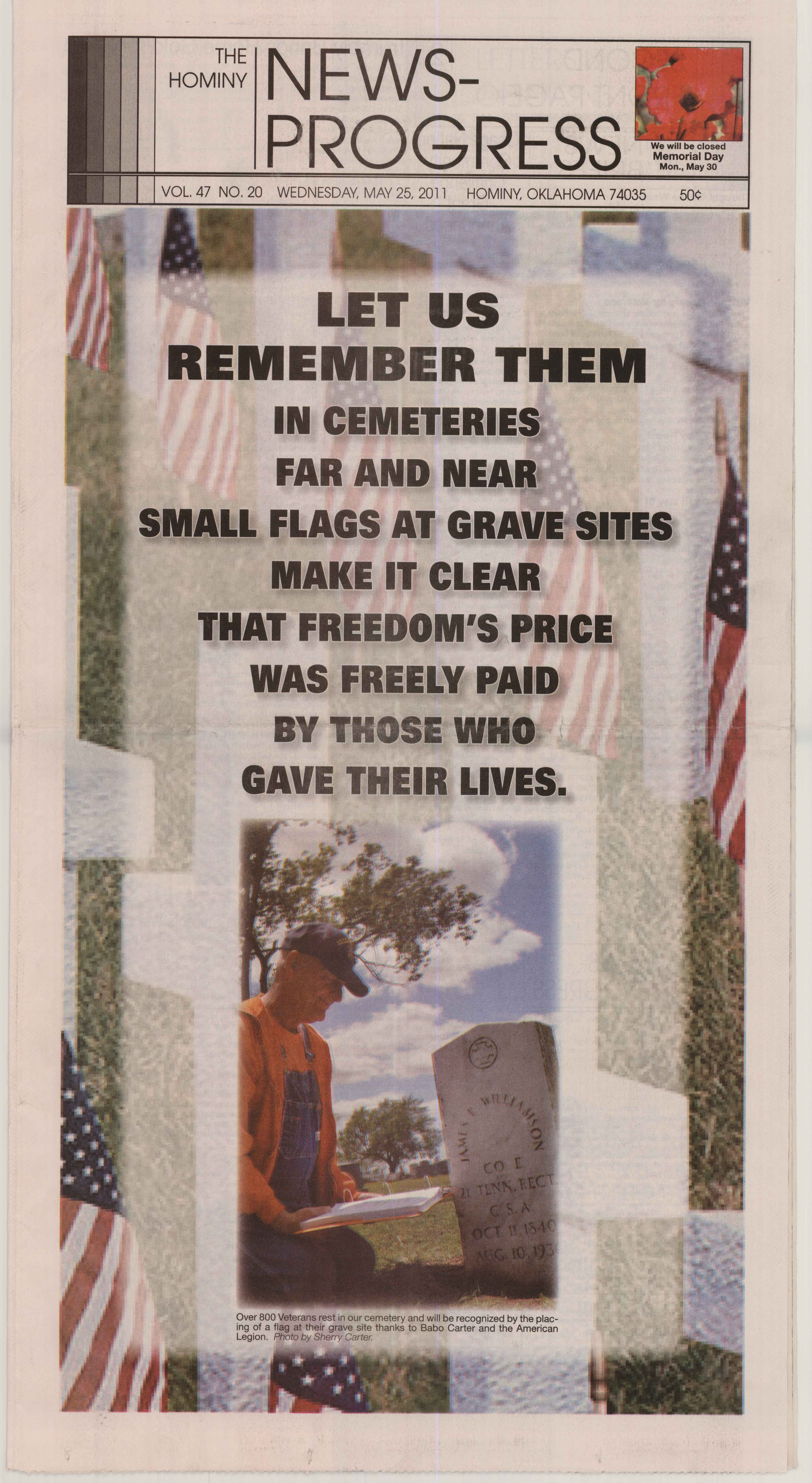 Babo Carter’s efforts were highlighted in the HOMINY NEWS PROGRESS, 2011.